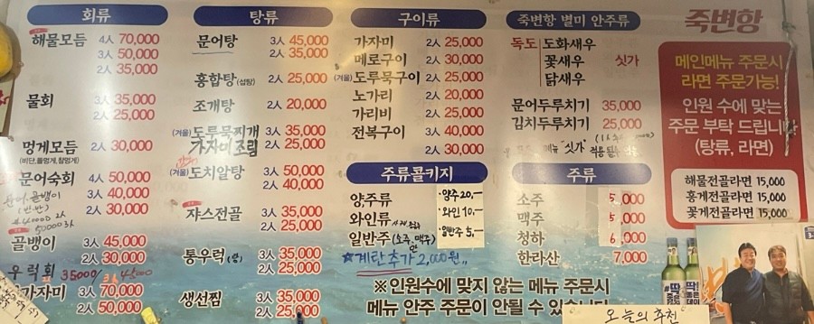 🥘 죽변항 해물포차 메뉴와 가격